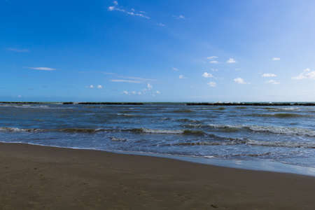 rimini riccione beach in winter with sand and sea on a sunny day