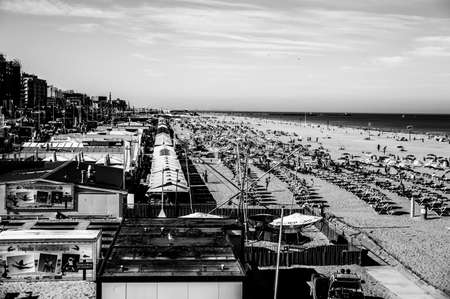 Panorama of the Adriatic Riviera in Romagna, Italy, with beaches, sea, umbrellas and hotels