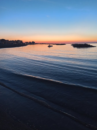Pesaro river mouth bay leaf Flaminia at sunset