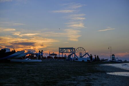 rimini beach beautiful sunset with bright colors and sea panoramic wheel