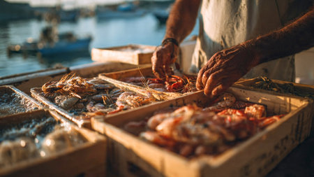 Fisherman preparing fresh seafood in the port of Essaouira, Morocco