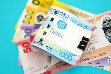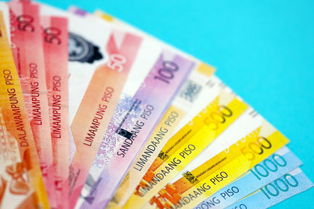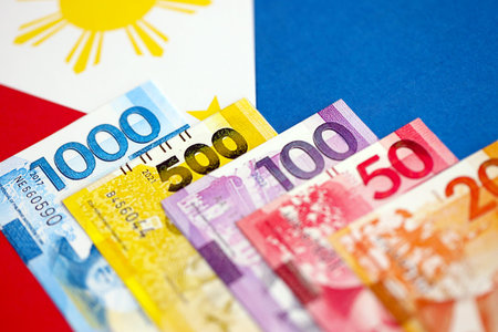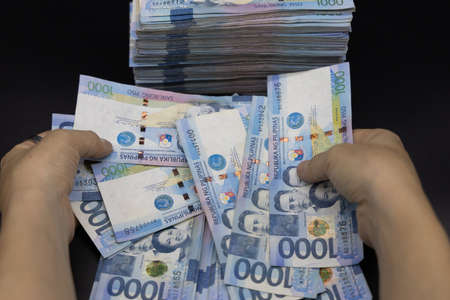 Philippines money, peso, paper banknotes, cash. Philippines money for doing business, traveling