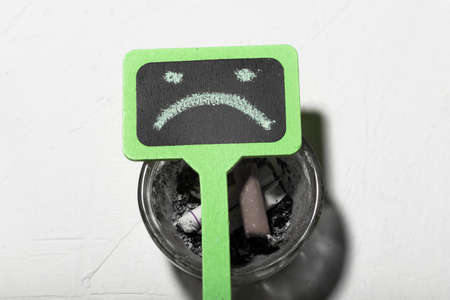 Harm of smoking concept. Unhappy smiley and ashtray with cigarette butts. Smoking is an unhealthy and bad habit. depression from smoking.