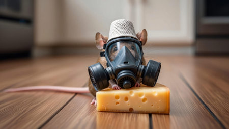 A suitable title for the image should capture the main elements: a mouse, a mask, and cheese.