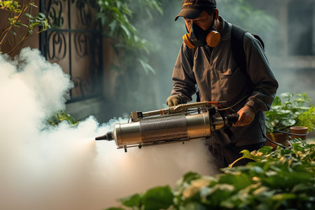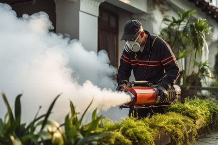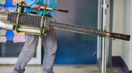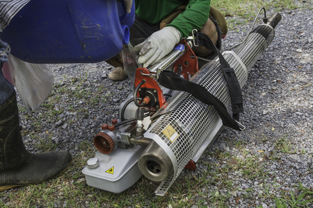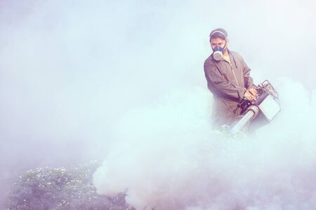 Man work fogging to eliminate mosquito for preventing spread dengue fever and zika virus