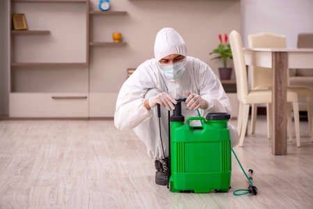 Pest Control Exterminator Man Spraying Termite Pesticide In Office