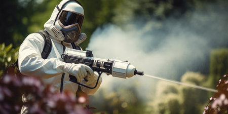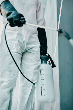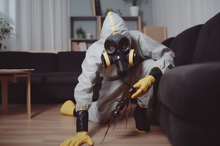 pesticide termite sofa exterminator insect control uniform cockroach kill pest. Generative AI.