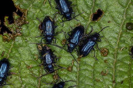 Asian Lady Beetle Larvae of the species Harmonia axyridis eating aphids on a hibiscus plant