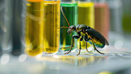 An arthropod, the cockroach, perches atop a glass test tube in a laboratory. It may be a pest, but cockroaches also play a role as pollinators and can even survive by drinking oil or other liquids