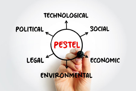 PESTEL acronym - framework of macro-environmental factors used in the environmental scanning component of strategic management, mind map concept for presentations and reports
