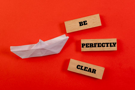 Clarity and directness visualized. A paper boat navigates a sea of red, guided by the message Be Perfectly Clear. Perfect for communication, honesty, and transparency themes.