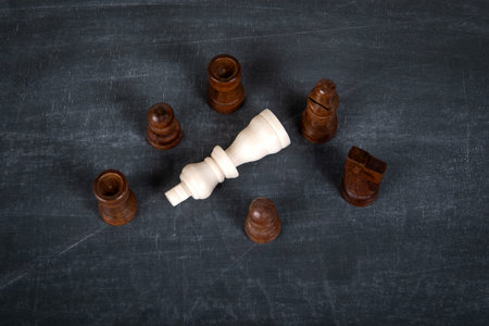 White piece falls into a trap of black chessmen. Concept of deadlock, hopeless situation, despair