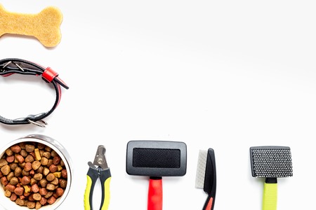 concept pet care and training on white background top view