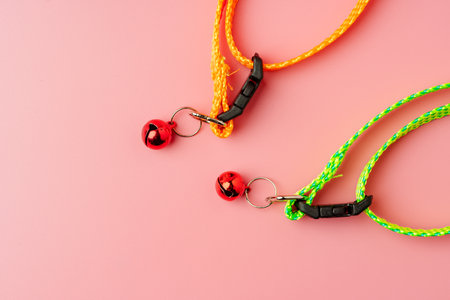 Textile pet collar on pink background studio photo