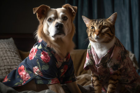 photoshoot, with cat and dog models wearing outfits of their own designs, created with generative ai