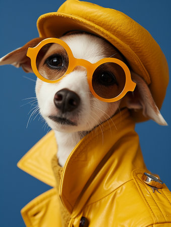Stylish Dog in Yellow Aviator Hat and Glasses