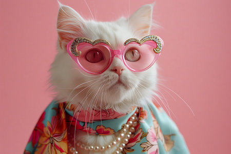 Elegant Cat in Sparkly Pink Glasses and Floral Attire