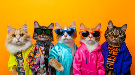 Stylish cats in sunglasses studio portrait colorful background fun vibe fashionable look