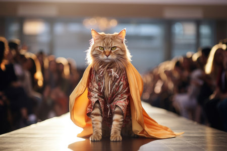 feline and canine models in fashionable outfits on the catwalk, created with generative ai
