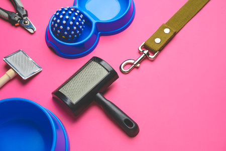 Pet care accessories on dark background