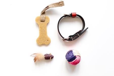 concept pet care and training on white background top view.