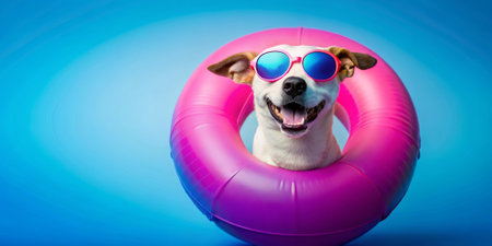 Happy Dog with Sunglasses and Floating Ring Vector Illustration Clipart And Line Art Designs, Happy dog with sunglasses, floating ring vector for fun summer designs