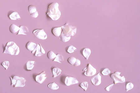 The petals are on the pink background. The Delicate petals are scattered with copy space.