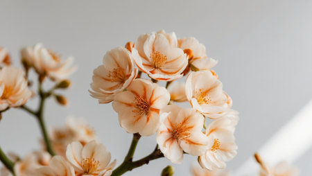 AI Generated. Closer look at a cluster of blossoms on a clean background featuring orange and white petals