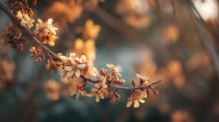 Cherry tree blossoming flowers with soft petals on natural floral background
