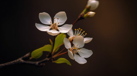 Ethereal digital artwork conveying spring serenity through subtle motion effects and harmonious color transitions. Advanced rendering techniques create fluid petal movement and intricate twig details, ideal for web headers, stationery designs, apparel patterns, and social media overlays. Suited for floral enthusiasts, graphic artists, and seasonal campaign creators v... AI-generated illustration.