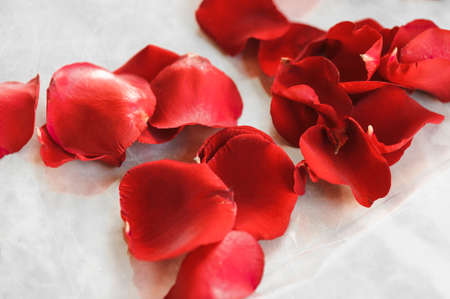 red rose petals on white background. High quality photo