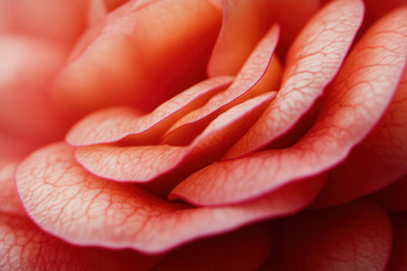 Close-up of delicate, layered, coral-pink flower petals.