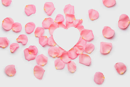 Pink rose petals. Valentine's day background. Flat lay, top view