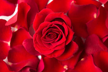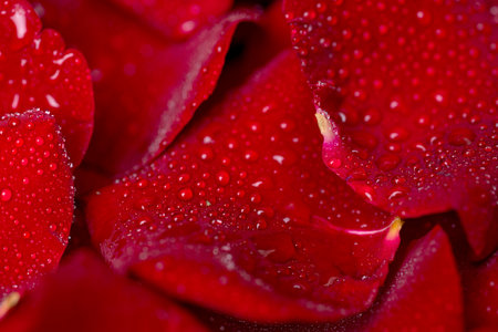 Pile of red rose petals background texture, romantic nature concept close-up