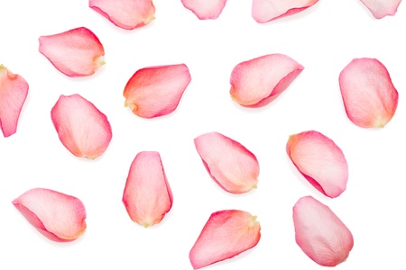 pink rose petals on white background