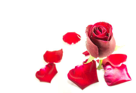 Red rose and petals white background photo shoot