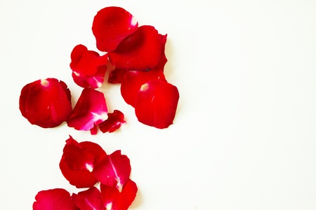 red rose petals on white background