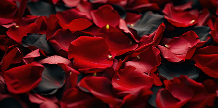 A close-up image of red and black rose petals creating a beautiful and romantic background.