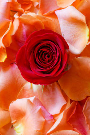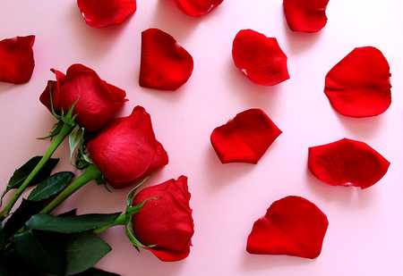 red rose petals scattered around