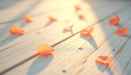 Delicate petals lay scattered across a smooth surface evoking tranquility and calmness.