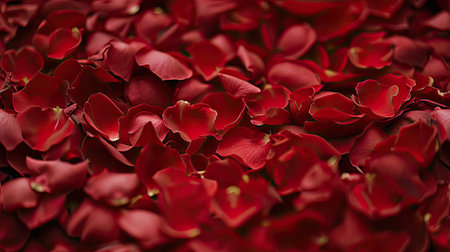 A close-up view of lush red rose petals fills the frame, highlighting their delicate textures and rich colors, ideal for floral arrangements and romantic imagery