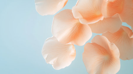 A stunning arrangement of rose petals in a gradient of soft pink and peach, creating an elegant and romantic background perfect for various design projects.