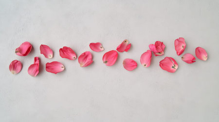 Delicate pink petals are gently scattered across a textured gray backdrop, forming a graceful border, evoking feelings of romance and love, perfect for valentines day or spring celebrations