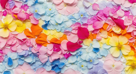 A delightful and energetic pattern composed of numerous small, colorful flower petals, offering a bright and cheerful visual for various design needs.