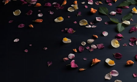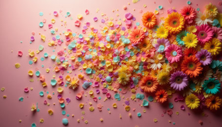 Colorful petals scattered as confetti for a festive celebration of joy