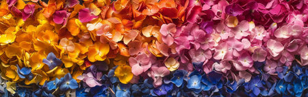 Vibrant close-up of colorful floral petals creating a stunning gradient effect in a horizontal layout.