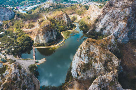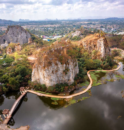 Aerial view of Khao Ngu Stone Park in Ratchaburi, Thailand
