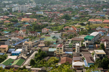 Aerial view of residential buildings, Ratchaburi skyline, Thailand. Urban city in Asia. Architecture landscape background.