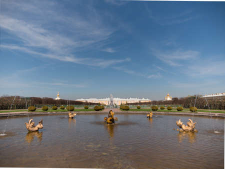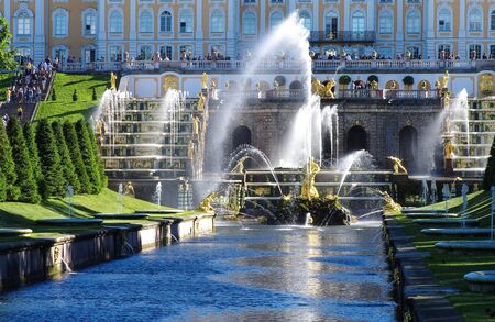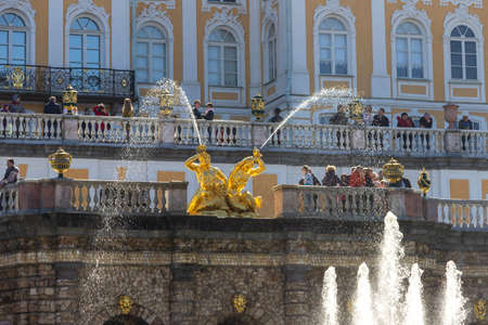 St. Petersburg, Russia - May 07, 2018: Fountains in the palace and park ensemble in Peterhof.