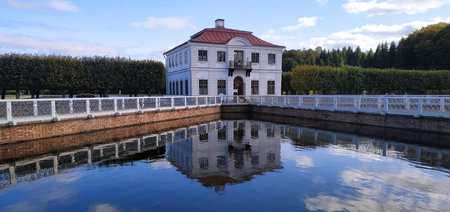 St. Petersburg, Russia - 2021 June 07: Hermitage pavilion in Peterhof Lower park